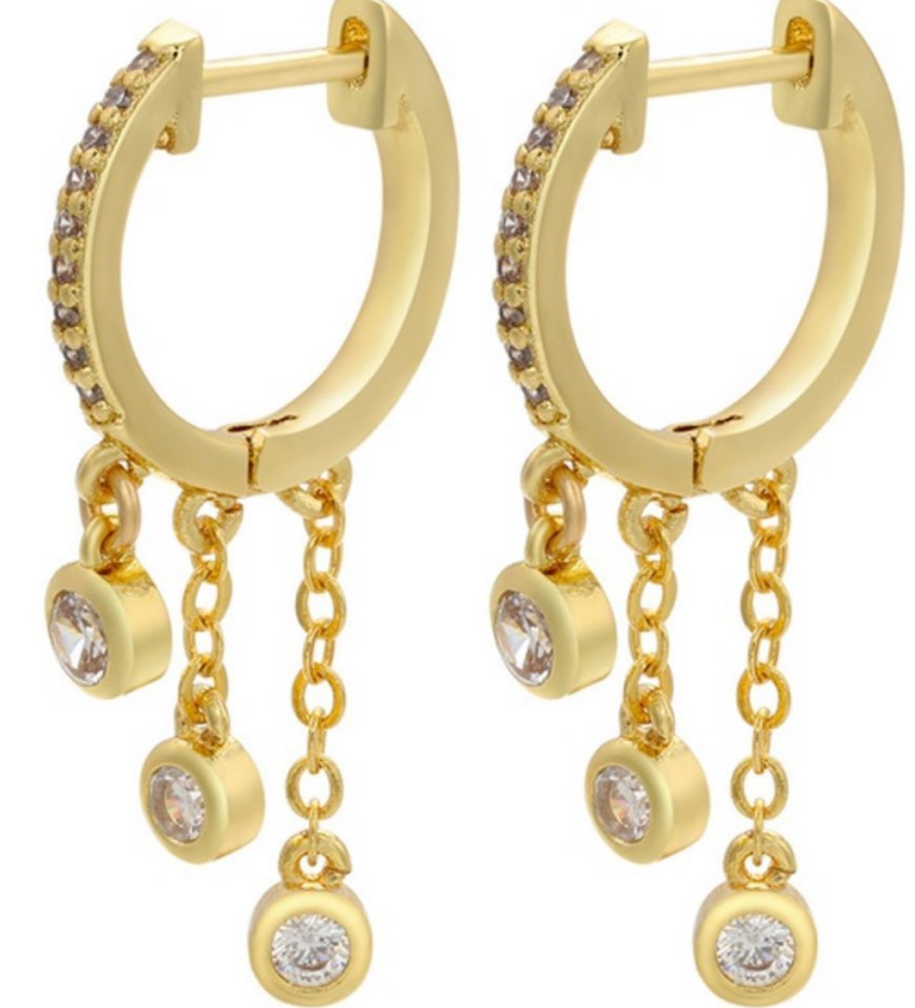 Expertly designed with CZ stones and delicate chains, our Dazzle Drop Huggies add a touch of glamour to any look. These small hoop earrings are versatile and stylish, perfect for any occasion.