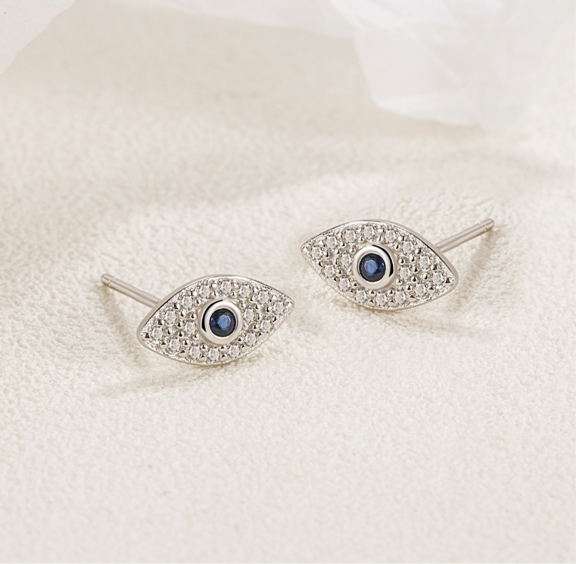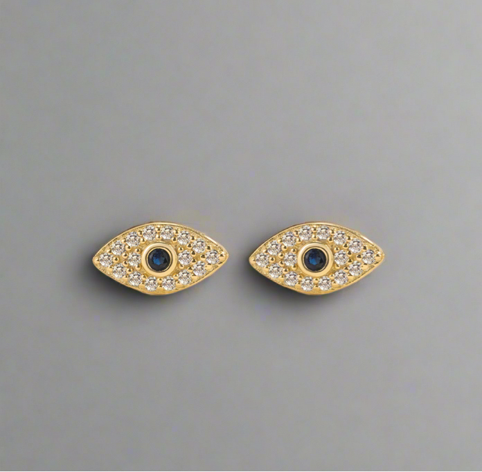 sterling silver stud earrings adorned with evil eye pendants available in silver or gold