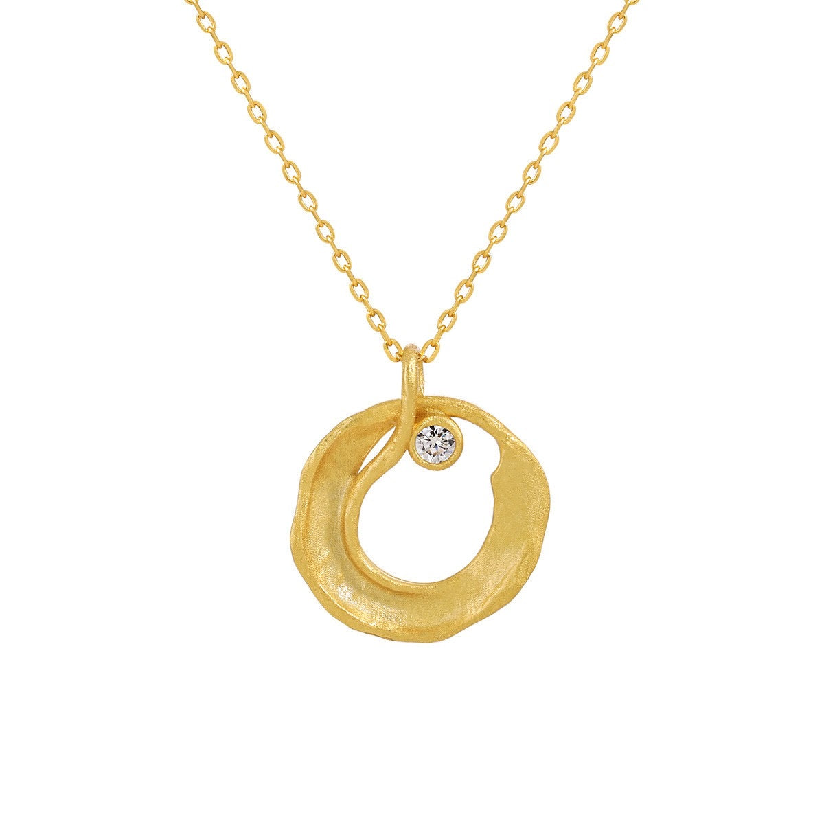 Made with 925 sterling silver and strong gold plating, this necklace features an airbrushed raw metal design and a CZ stud for added sparkle. Plus, it's adjustable for the perfect fit.